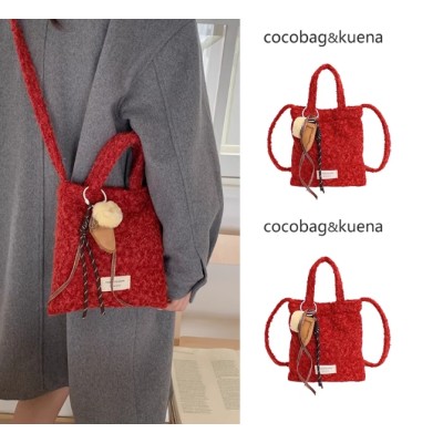 秋冬大容量新年红色毛呢手提包包女2025新款毛绒绒单肩斜挎毛毛包