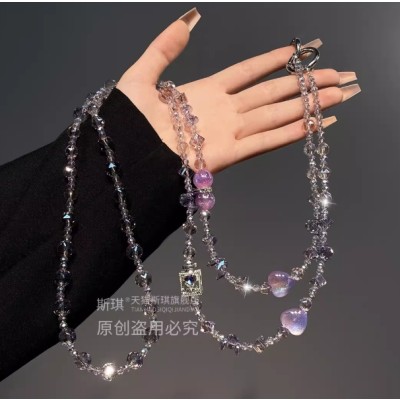 轻奢手机挂绳新款ins小众紫色爱心水晶斜跨链条挂脖肩背高级感精致好看女长款时尚百搭相机ccd防丢