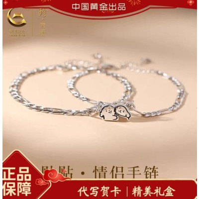 珍尚银纯银情侣手链情侣款一对S925新年礼物送男女友