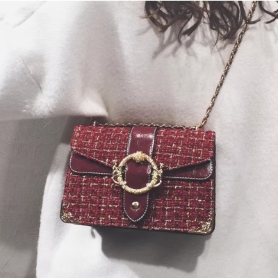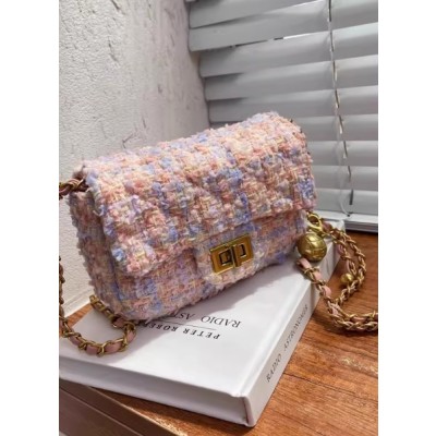 跨境女包秋冬新款小香风呢子链条斜挎包高级感女士小金球单肩包潮