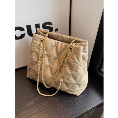 春夏菱格绣线大容量包包女2025新款百搭链条斜挎包时尚单肩水桶包