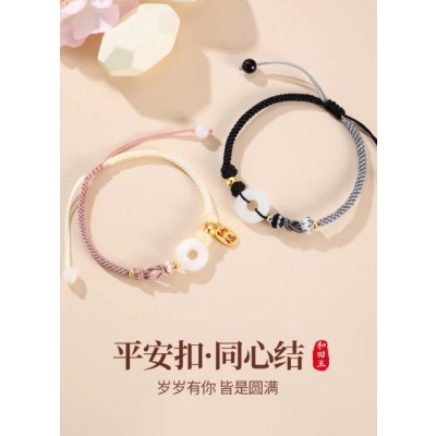 平安扣情侣手链女男一对情侣款纯银和田玉手绳环新年礼物送女男友