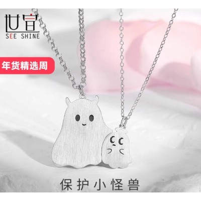 S925纯银小怪兽项链女情侣款卡通可爱幽灵吊坠我保护你情人节礼物