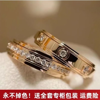 时来运转戒指合金镶钻双圈纯银镀金满天星情侣对莫桑钻戒可转动