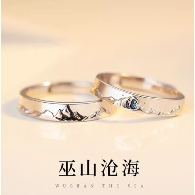 情侣戒指一对999纯银男女款对戒足银可调节送女友七夕情人节礼物