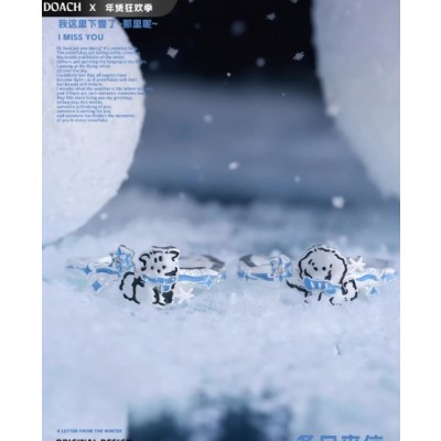 DOACH冬日来信小猫小狗闺蜜对戒925纯银戒指原创设计甜酷情侣对戒