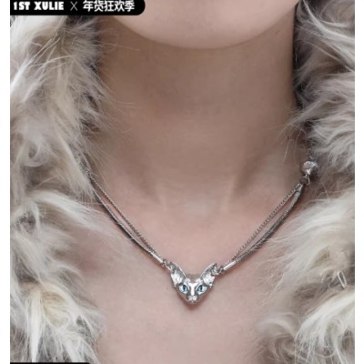1STXULIE原创猫项链女甜酷轻奢小众锁骨链2026新款爆款秋冬毛衣链