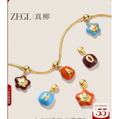 ZEGL小方豆明星同款字母项链女笑脸花花吊坠锁骨链可爱甜酷颈链