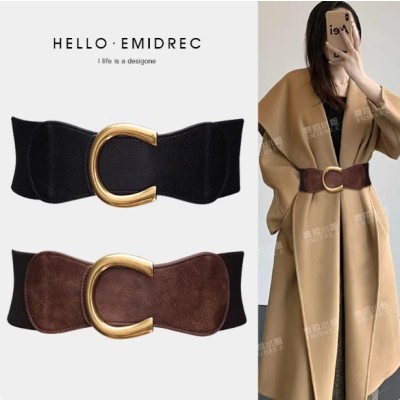 高级感腰封宽腰带女粗装饰配裙子毛衣大衣羽绒服复古棕色咖色皮带