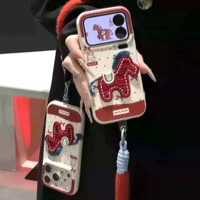 新年刺绣小马挂绳适用苹果17promax手机壳