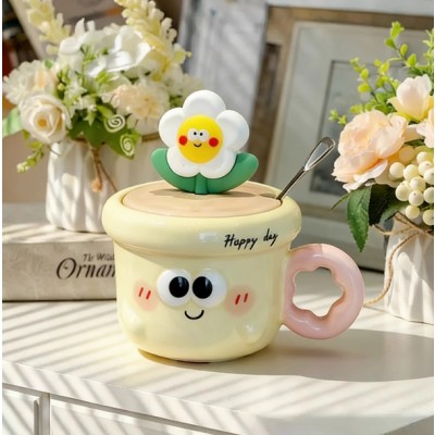 可爱高颜值花朵陶瓷马克杯办公室咖啡杯情侣喝水杯带盖女生日礼物