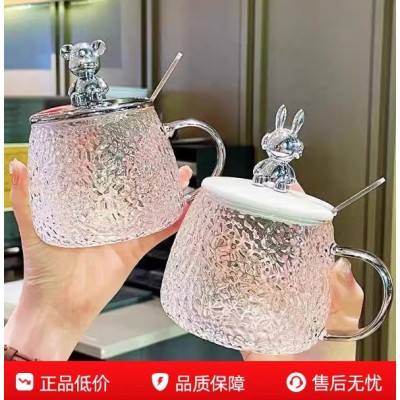 ins风可爱小熊玻璃杯高颜值女生水杯马克杯带盖勺办公室早餐杯