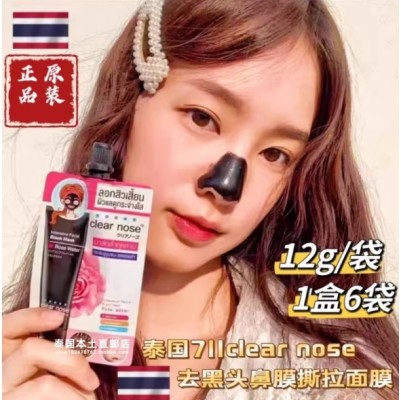 泰国711便携装clear nose黑头清洁撕拉面膜玫瑰水黑泥膜12g