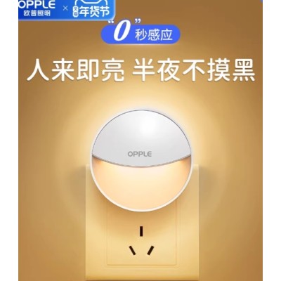 欧普人体感应灯小夜灯家用卧室床头睡眠灯插电款起夜过道厕所声控