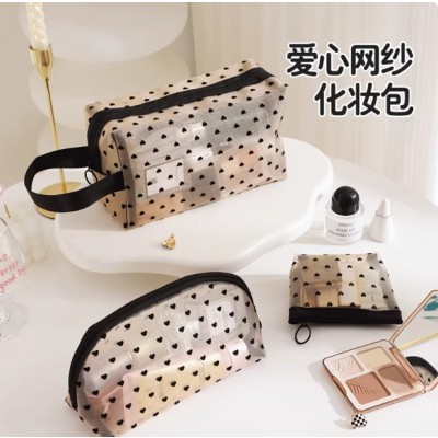 网纱化妆包爱心拉链便携随身口红补妆包大容量旅行收纳加大洗漱包