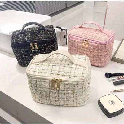 新款小香风化妆包大容量格子手提韩版便携洗漱收纳包妆盒旅行包