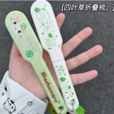 原创四叶草轻松熊梳子可折叠旅行便携随身发梳学生宿舍卡通折叠梳