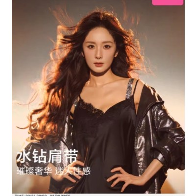 带胸垫睡衣女四季性感冰丝小胸聚拢新款蕾丝V领吊带睡裙火辣套装