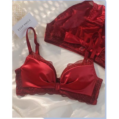 本命年套装性感内衣女士小胸聚拢秋冬薄款收副乳红色结婚新娘文胸