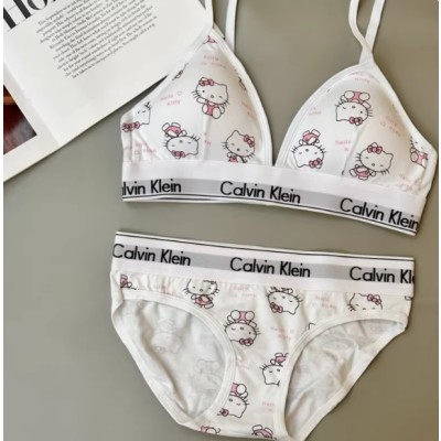ck内衣联名hellokitty凯蒂猫情侣内裤三件套装女无钢圈带胸垫文胸