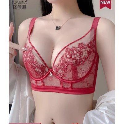 图薇娜调整型内衣本命年红色胸罩大胸显小大码收副乳防下垂文胸薄