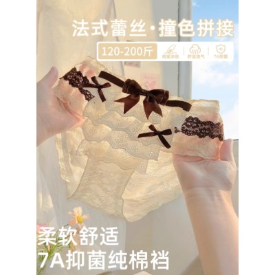 LNPL法式蕾丝内裤女款2026新款大码胖MM高级感撞色拼接舒适三角裤