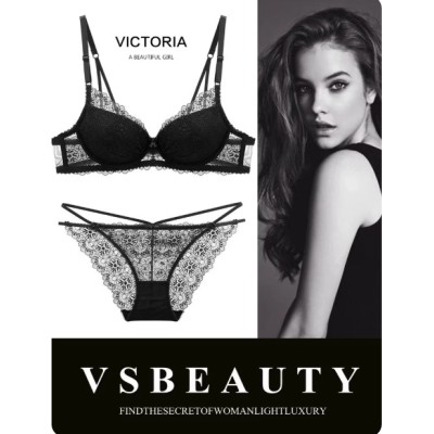 韩国SZDG2025新款蕾丝胸罩套装小胸聚拢内衣裤女薄款性感黑色文胸