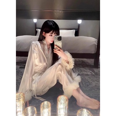 韩国Uamtor睡衣女春秋新款丝绸缎面纯欲风高级感宫廷风气质家居服