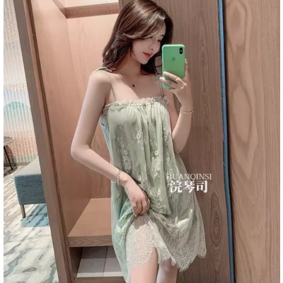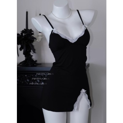 郑大嘻~性感蕾丝吊带裙开叉夏季纯欲睡衣睡裙v领修身高级感纯欲风