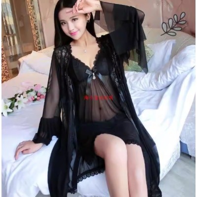 性感睡衣女高级感蕾丝吊带睡裙两件套睡袍薄纱冰丝