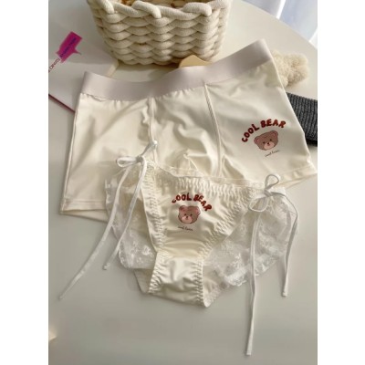 【情侣款】奶白小熊情侣内裤一男一女牛奶丝纯棉性感纯欲系带可解