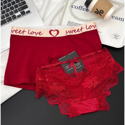 情侣款红色情侣内裤一男一女2025新款本命年镂空性感纯欲蕾丝结婚