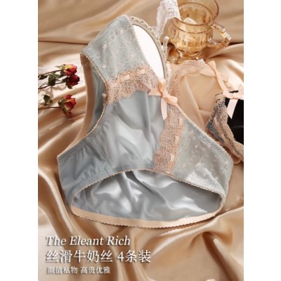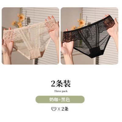 丝滑牛奶丝性感蕾丝内裤 女士冰丝无痕低腰纯棉档三角裤 女夏薄款