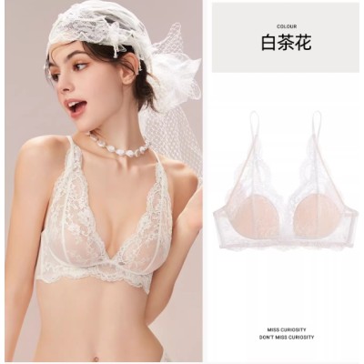 好奇蜜斯蕾丝法式内衣女美背性感夏薄纯欲文胸罩套装白三角杯小胸