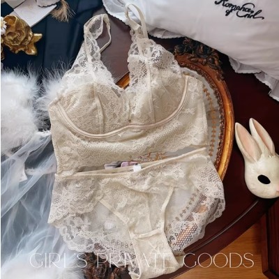 龙心同款の高奢蕾丝纯欲日系轻薄软无钢圈美背女士内衣文胸套装