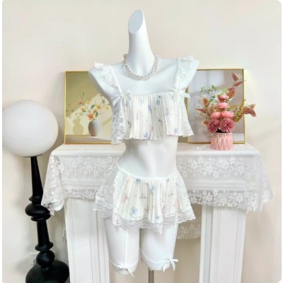 性感睡衣女纯欲风小胸蕾丝花边褶皱吊带独特绝美
