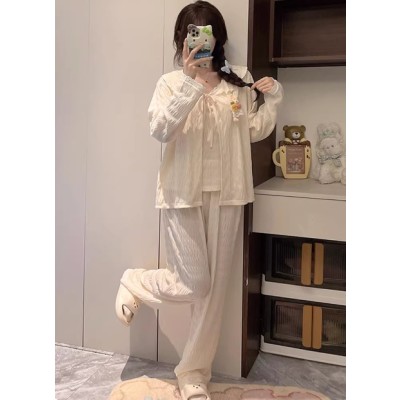 秋季新款吊带开衫纯棉长袖睡衣女带胸垫纯欲风薄款家居服三件套装