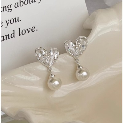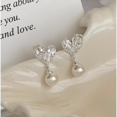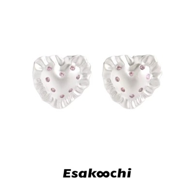 Esakoochi甜蜜回忆~原创银色抱枕爱心耳钉粉钻甜美小巧高级耳饰