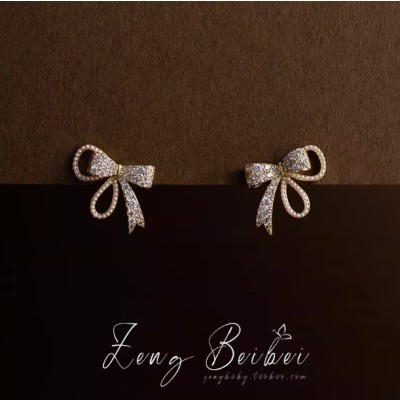 花下芭蕾~法式超闪蝴蝶结耳钉 复古仙女小众设计高级质感耳饰耳环