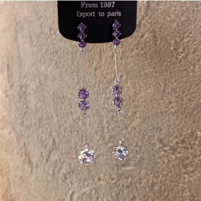 「摇曳生姿」小众紫色锆石流苏耳钉.长款耳环气质拉满~耳夹也有哦