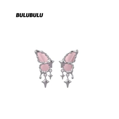BULUBULU原创镜面蝴蝶耳钉粉色耳夹轻奢高级感耳饰女设计感配饰品