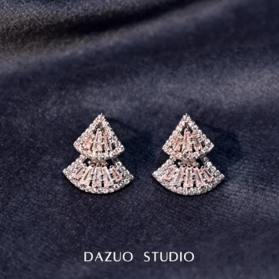 锆石闪钻扇形简约耳环2026新款爆款耳钉轻奢高级感气质大气耳饰女