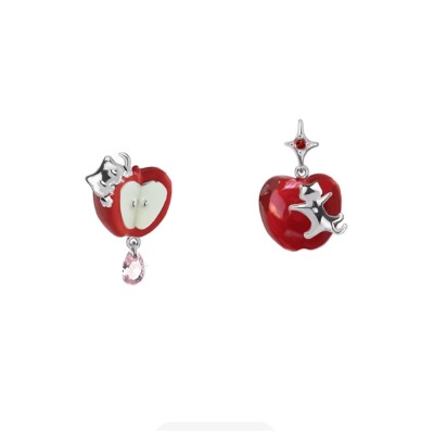 MASW麻秀原创设计可爱趣味切片苹果耳环女不对称轻奢猫猫耳钉新款