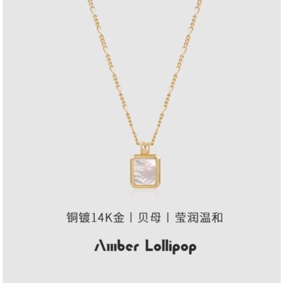 AmberLollipop天然白贝母项链女方形吊坠锁骨链小众颈链百搭配饰