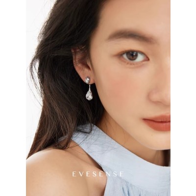 EVESENSE克拉系列轻奢银色闪钻水滴耳环高级小众原创耳饰气质耳坠