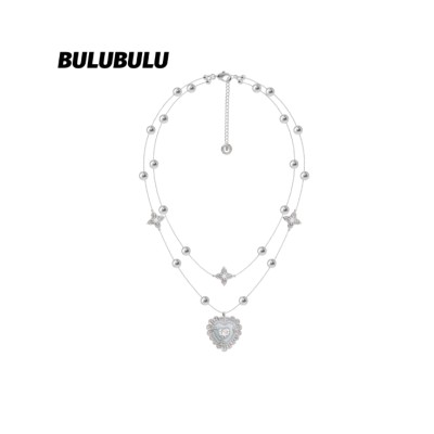 BULUBULU悸动系列蓝色爱心项链珍珠吊坠女小众原创颈链双层锁骨链
