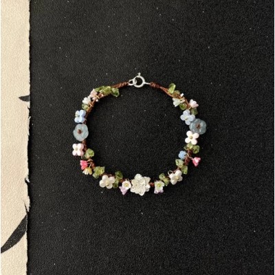 英国【设计师】Make Kana 纯银莲花天然橄榄石编织手链女摆件手绳