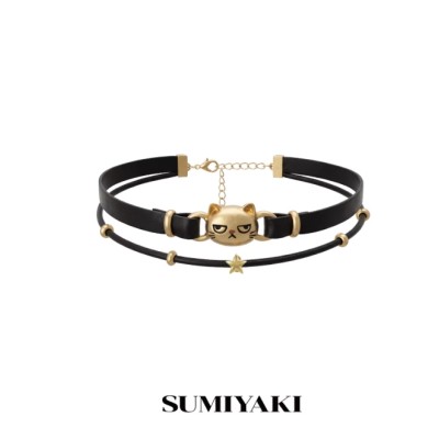 SUMIYAKI 不高兴猫咪童趣双层锁骨链可爱甜酷颈链圣诞礼物项链