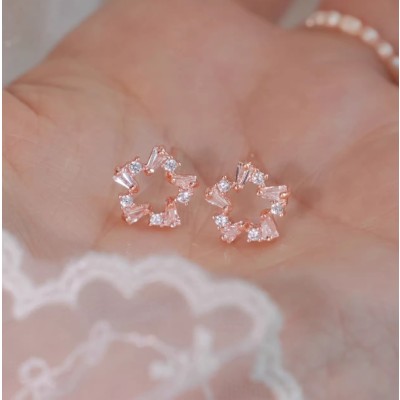 aprilmeetseason闪闪亮晶晶的海蓝锆石纯银五角星耳钉百搭养耳洞