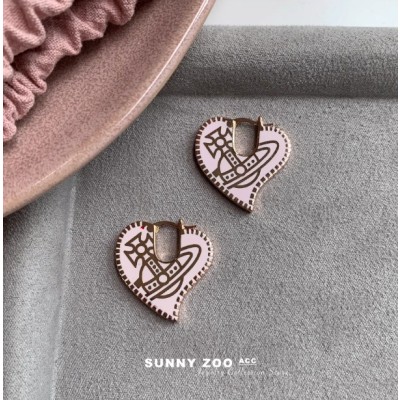 SUNNYZOO|粉雾桃心 不对称齿轮烤漆土星耳环小众重工高级感耳饰